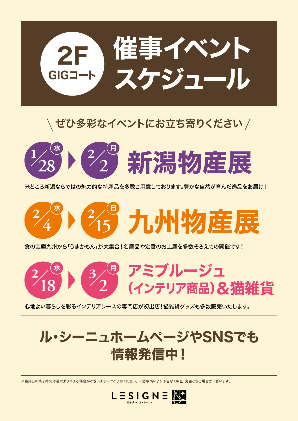 2F GIGコート 催事イベントスケジュール